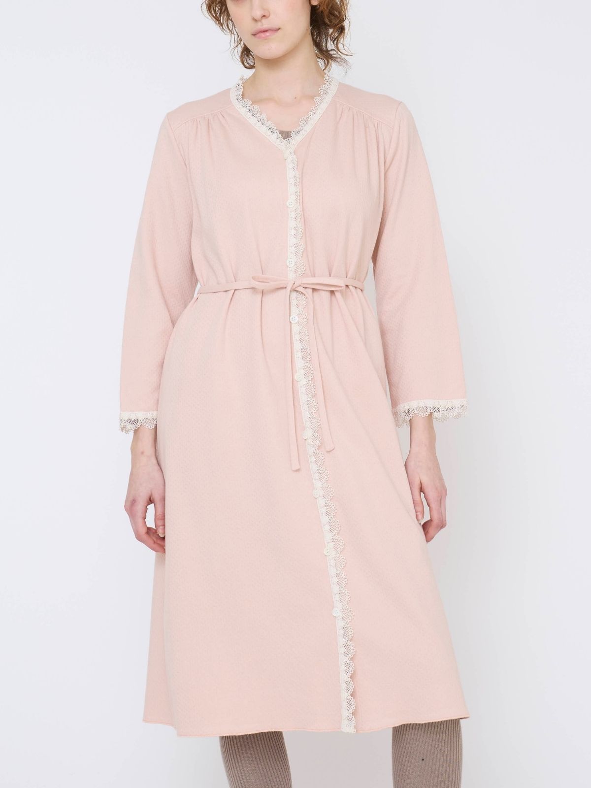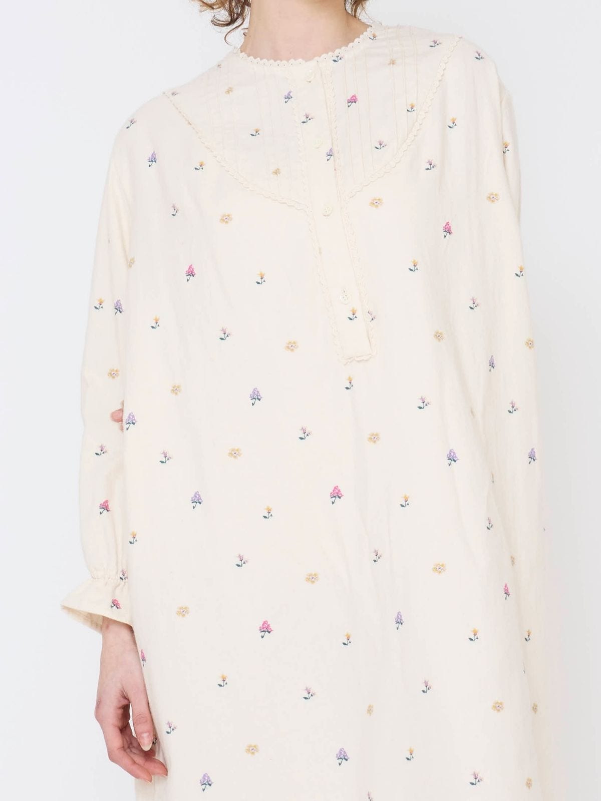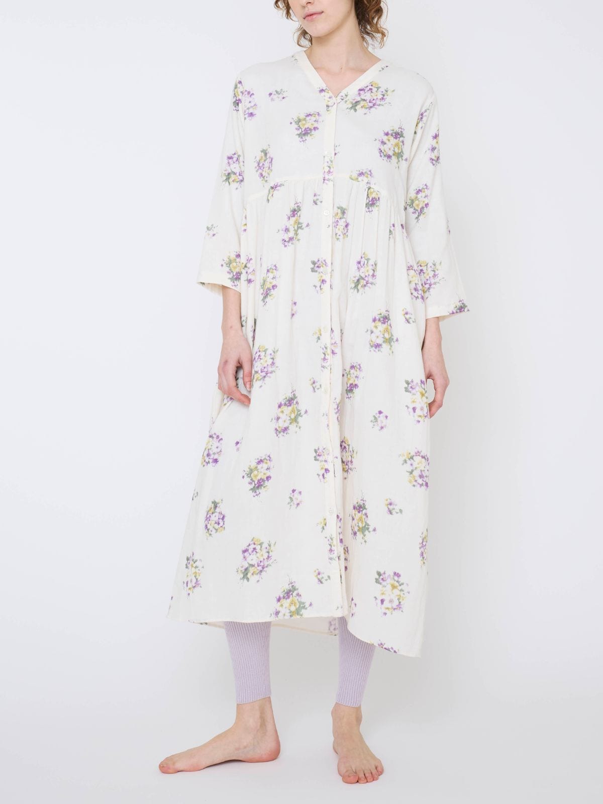 洗うほどにふわっと空気をはらんで、暖かく、肌に寄りそうネルドレス。ロングのゆったりしたデザインは、全身でふんわりとした温かい肌触りに包まれて眠ることを実感してほしいから。