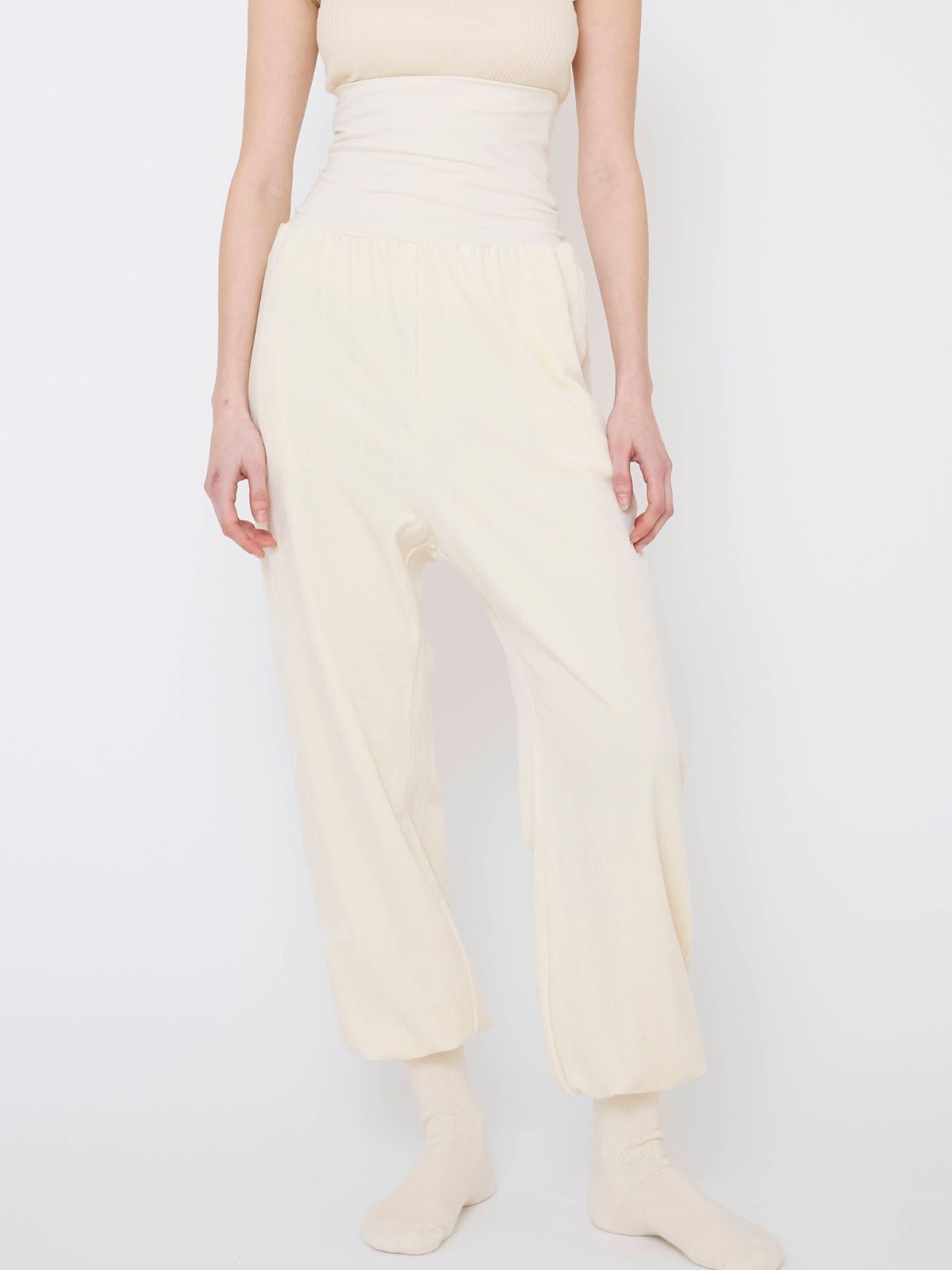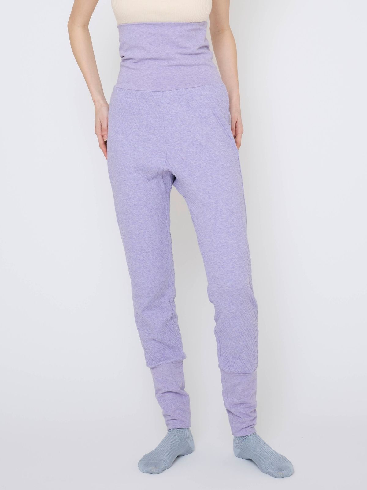 珍しいオーガニックコットンのベルベット素材で、独特のしっとり感で肌に吸い付くような心地よさです。腹巻付きのパンツで、冷えがちなお腹周りまでしっかりと寒さや冷えから守ります。nanadeorの中では最も厚手で温かい生地です。