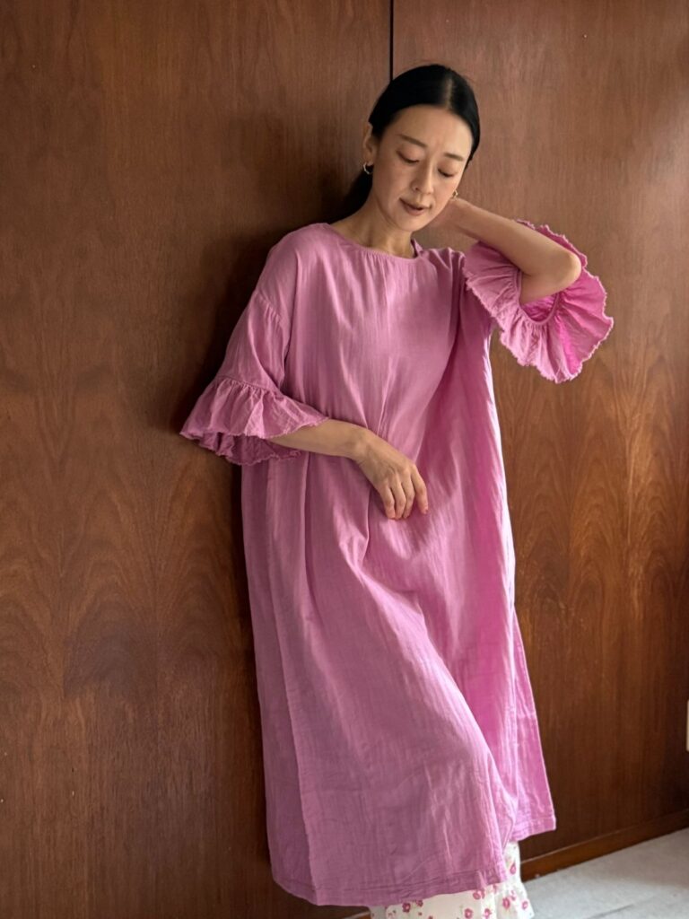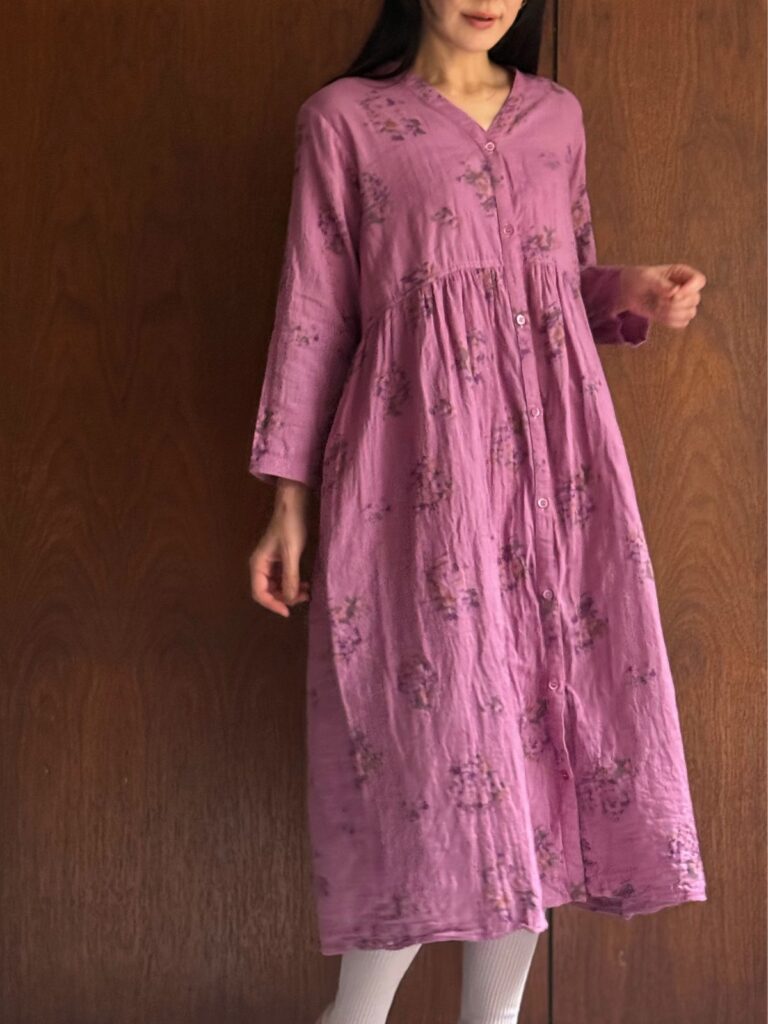 草木染めガーゼ ローズマリードレス