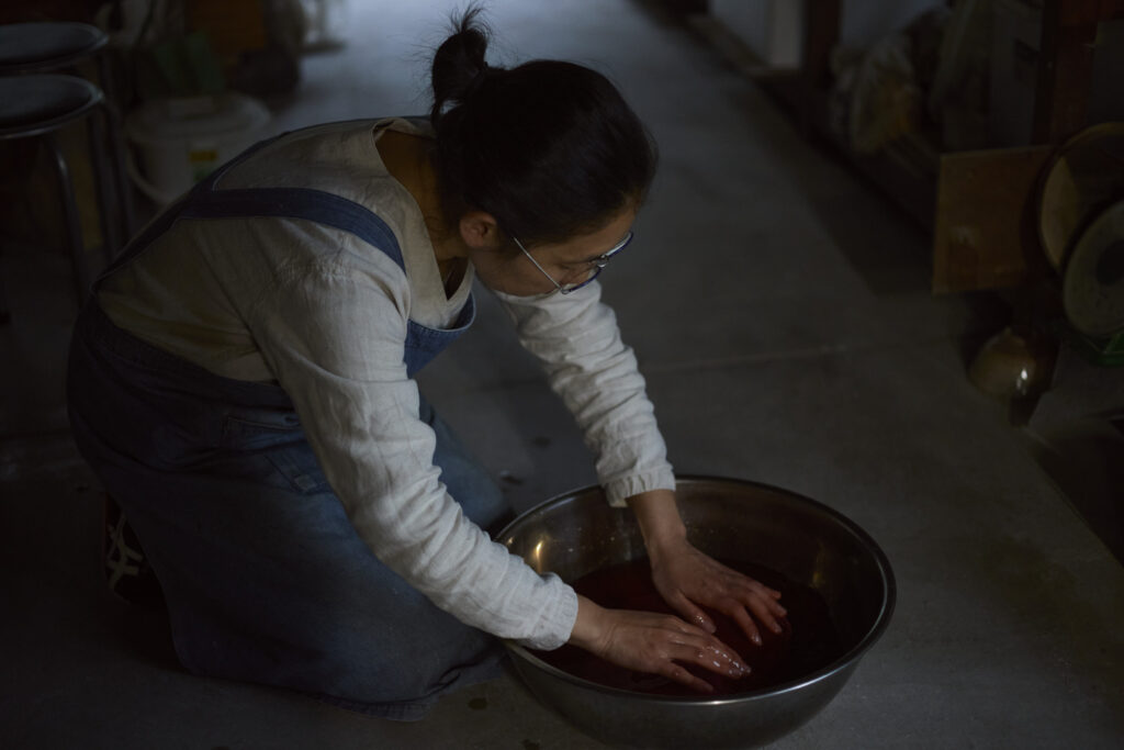 すべて手仕事で仕上げられる草木染め。