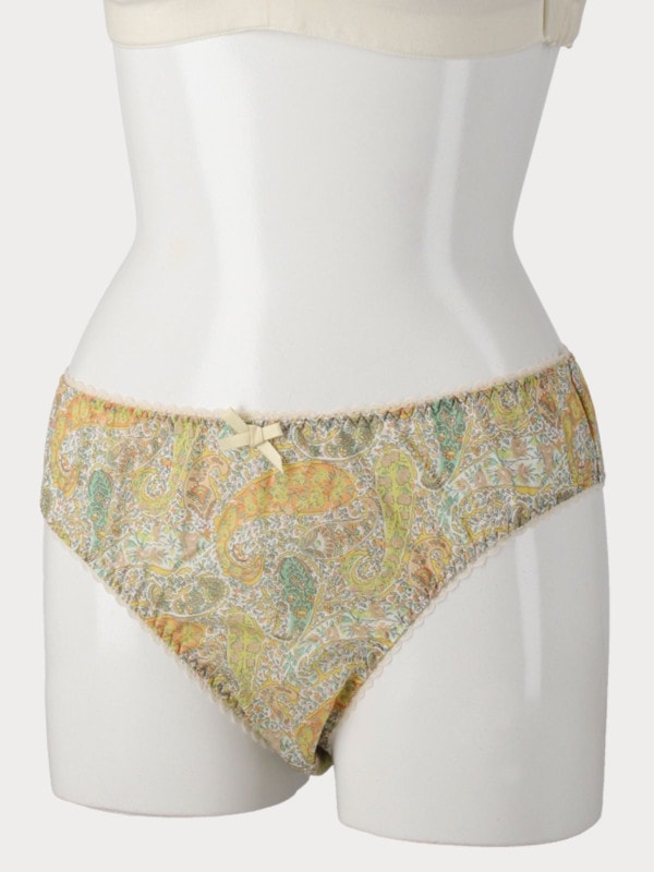 あたたかみのあるイエローペイズリー柄のトライアングルブラです。