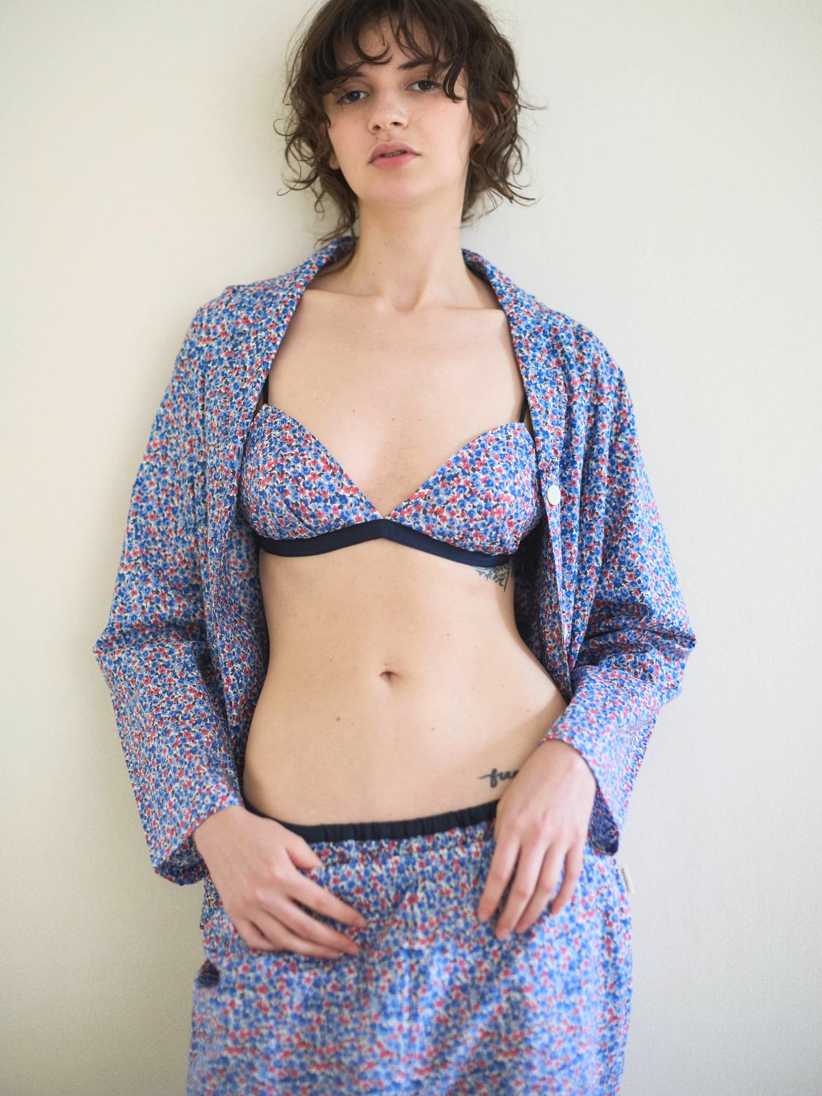 ブルーの小花柄がフレンチシックな印象のHOKKOH MADE WITH LIBERTY FABRICのブラジャーです