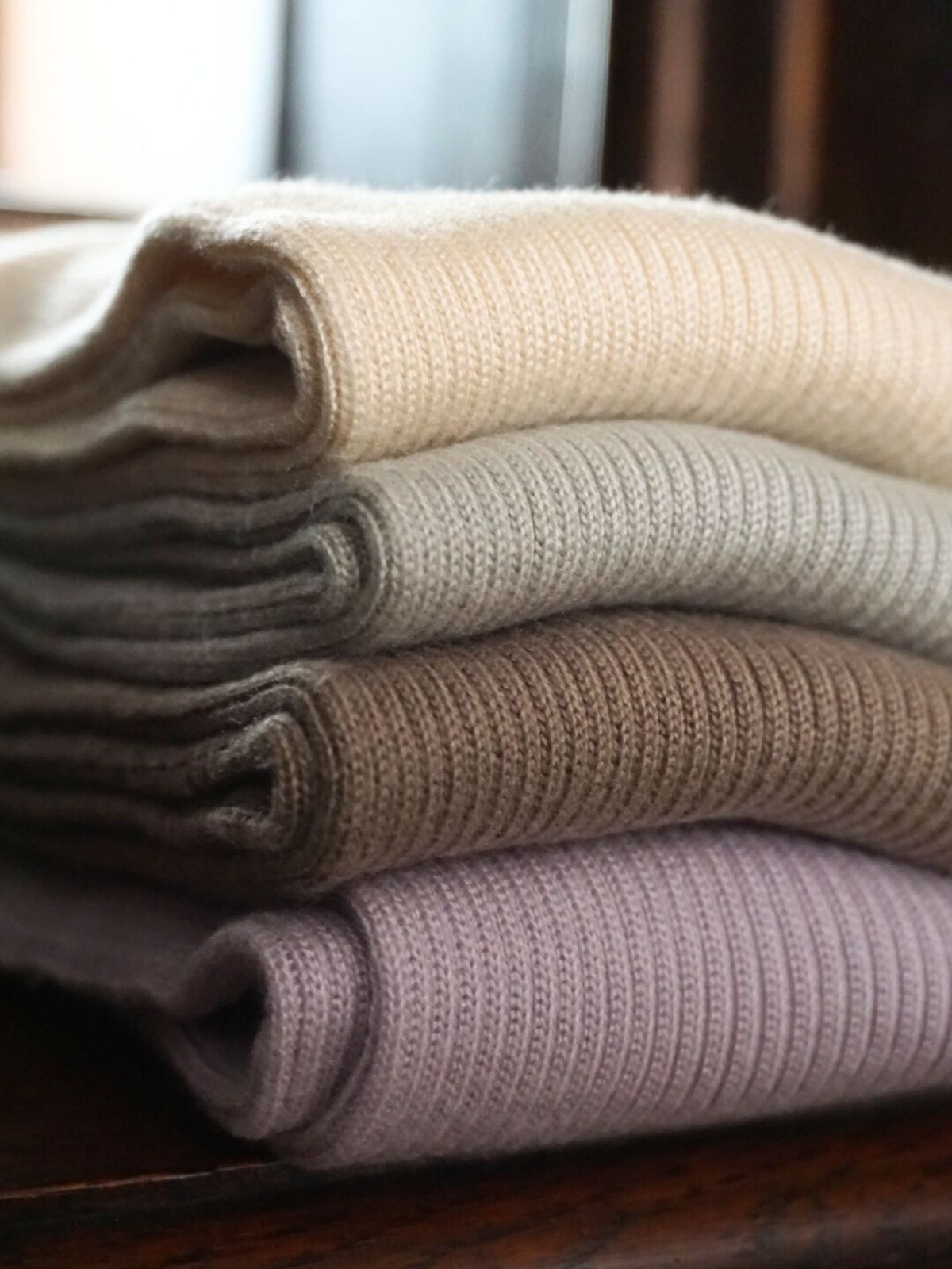 nanadecorが大切にしているのは、肌あたりのやさしさ。縫い目のないホールガーメント製法で、筒状にそのまま立体的に編み上げます。