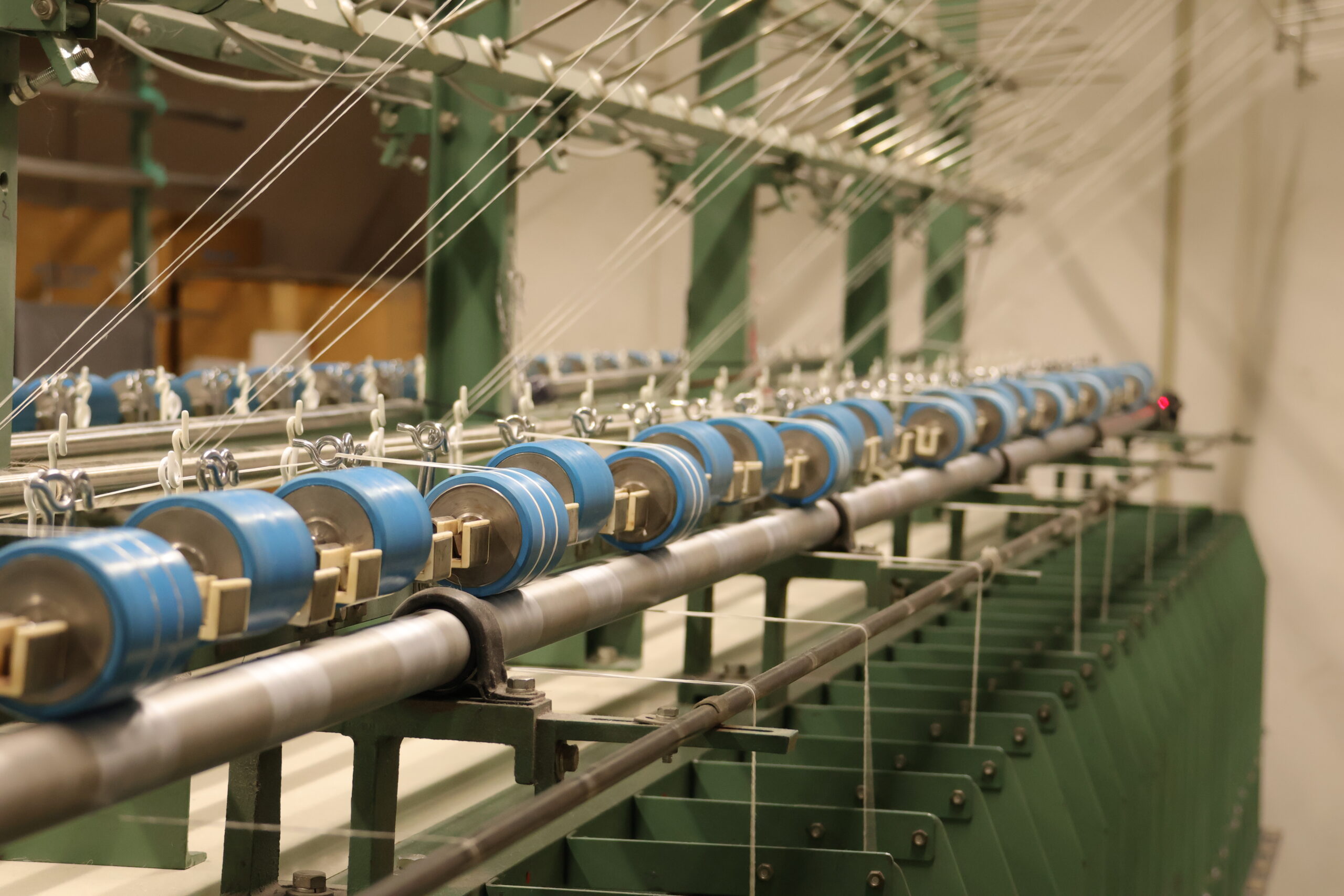 ごく細い糸を2本取りにし、さらに撚りをかけて強度を持たせます。