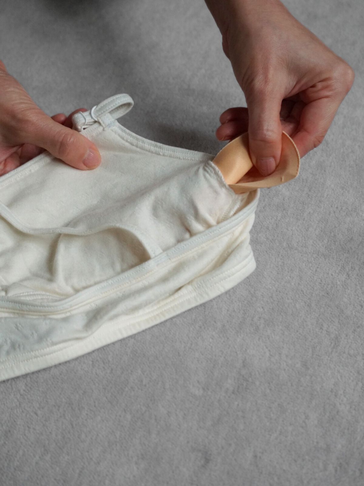 すぽっと被れるタイプのスポーツブラ型なので、日中も快適なつけ心地で過ごせます。