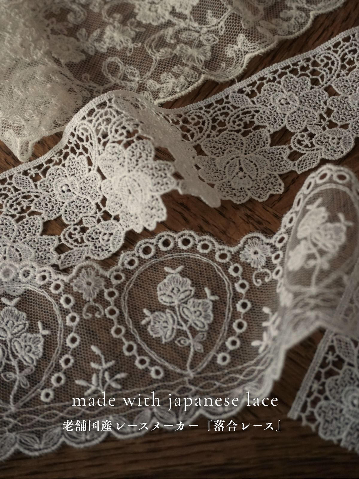 長年にわたり培われた国内の技術による、繊細で美しいレース。
